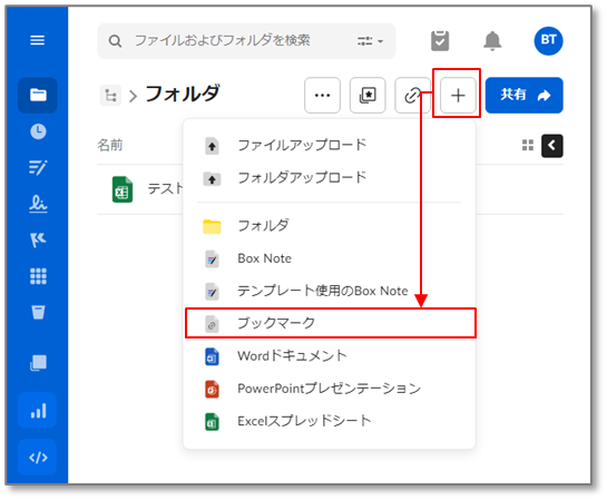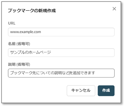 画面右上の [新規+] ボタンから「ブックマーク」を作成します。
