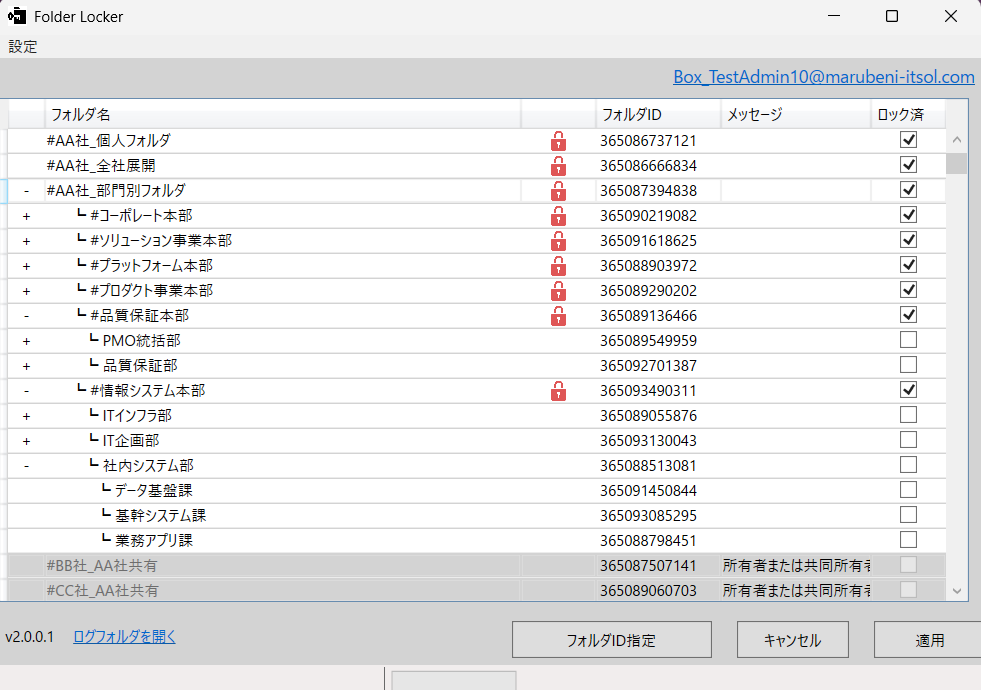 ※Folder Lockerの操作には共同所有者以上の権限が必要です。